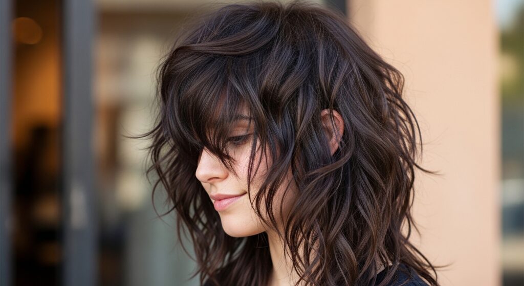It’s not your 80s business-in-front-party-in-back cut. This is all about soft layers, curtain bangs, and a feeling of effortless cool. Perfect for wavy or curly hair that wants to do its own thing.