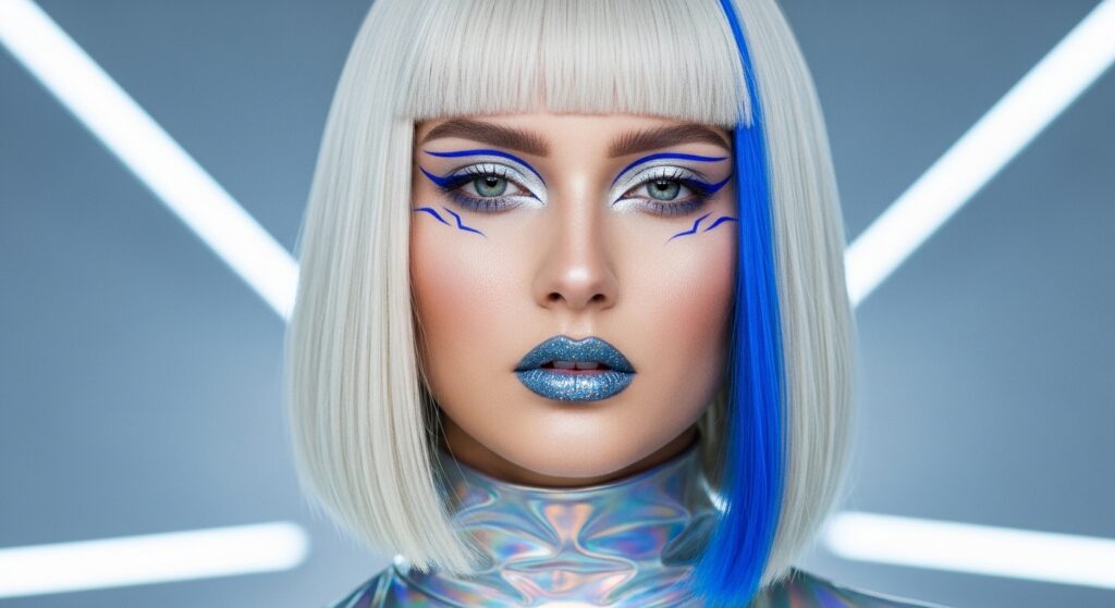 It’s a fun way to experiment without full commitment. The blunt cut makes the colors pop in a cool, graphic way.