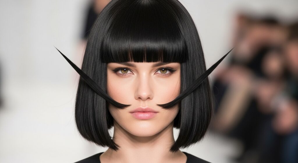This is the edgier cousin. Inspired by the vampire haircut, it features extreme angles, perhaps a sharp V-shape in the back, and very dramatic, straight-across bangs.