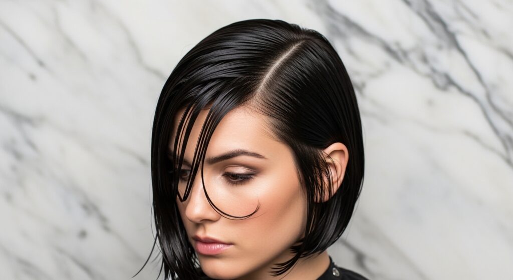 Pair it with a deep side part for extra drama. It’s confident, a little intimidating, and utterly captivating.
