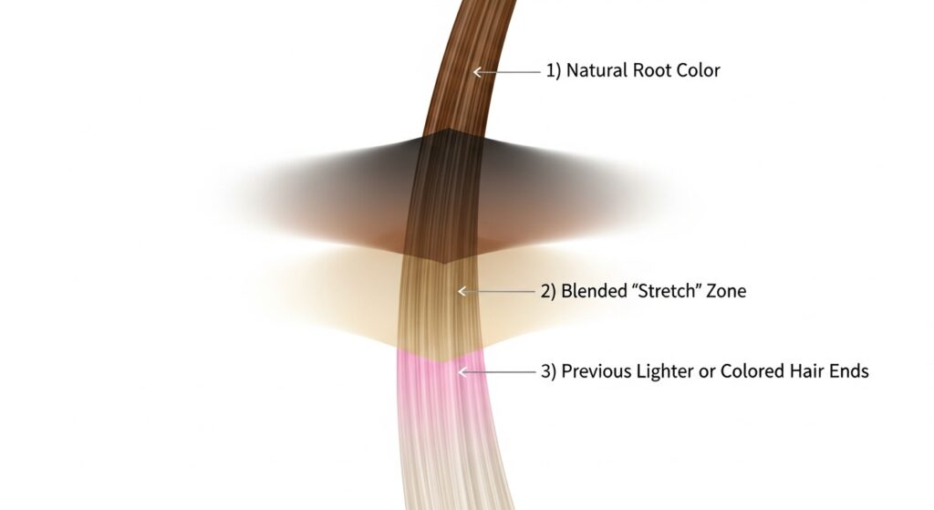 Root Smudging or Shadowing: This is the MVP of root stretches. A demi-permanent color, often one or two shades darker than your ends, is applied at the root and gently diffused down. It “smudges” that harsh line, creating a soft, shadowy effect that mimics natural, sun-kissed regrowth.