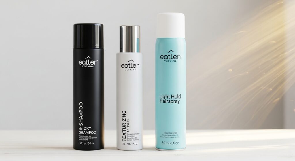 - A light-hold hairspray or texture spray