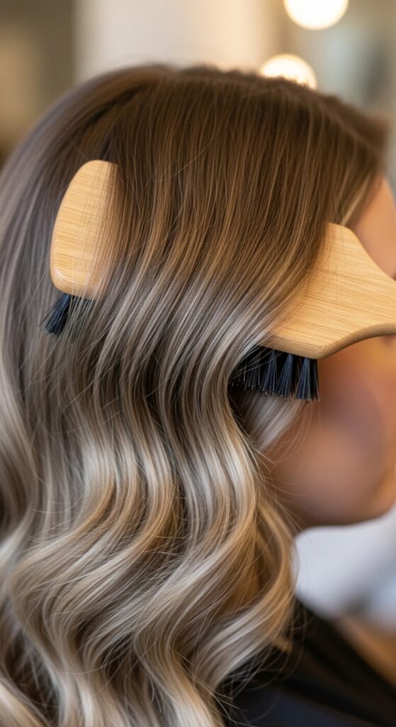 Once your hair is completely cool, it’s time for the final brush-out. I use a flexible, paddle brush or even just my fingers. Gently brush through all the waves or curls you created.