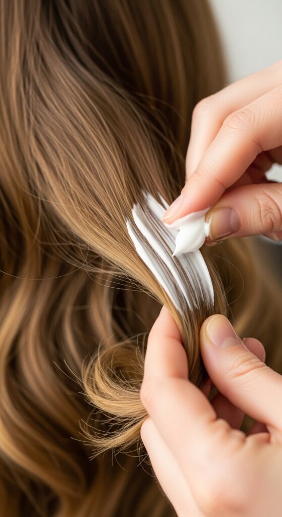 Now, with hair 80% dry, apply your pre-styling product. This depends on your goal. For waves, I use a texturizing mousse. For sleek looks, a smoothing cream. For texture, a sea salt spray.