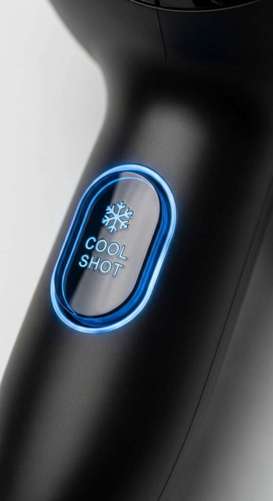 The cool air sets the hair’s shape. It’s like using hairspray at the root level but without any product buildup. It makes the volume last all day long.