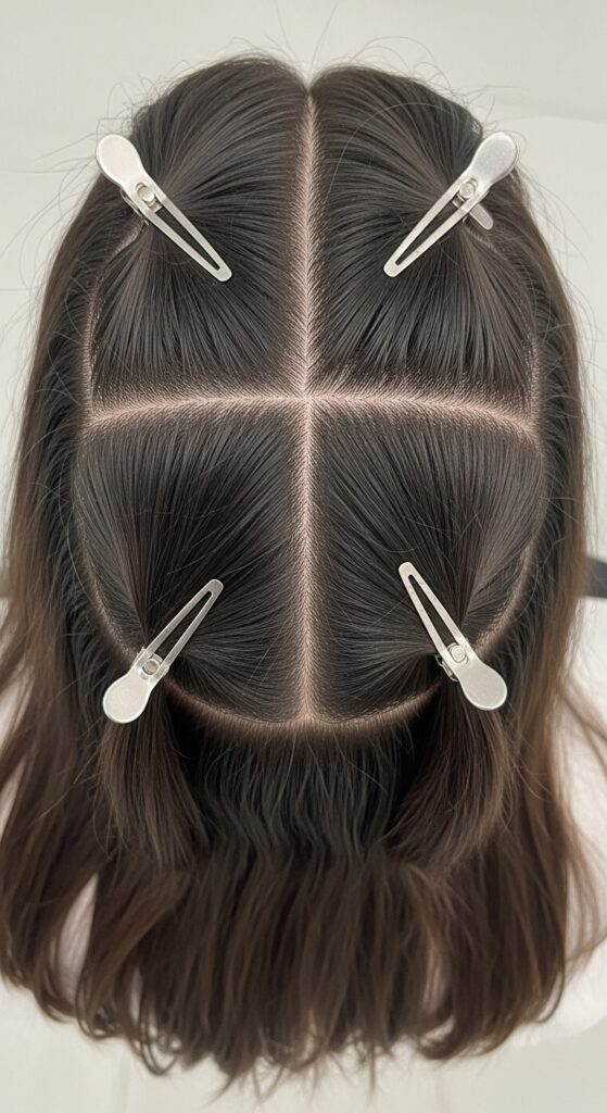 Don’t try to style all your hair at once. It’s messy and inefficient. Sectioning is what the pros do, and it actually speeds everything up. I use four basic clips.