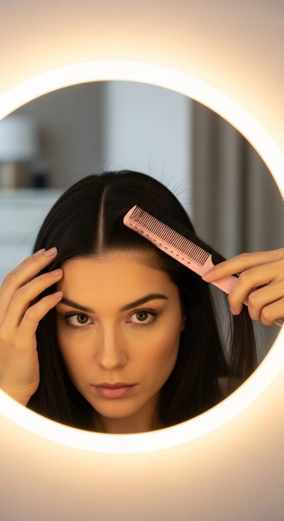 • Center Part Refresh: If you always side-part, try a clean center part. Mist roots with dry shampoo for lift and a fresh feel.