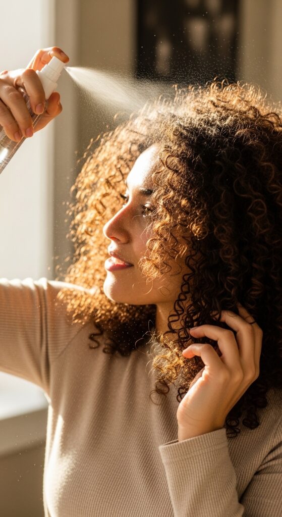 • Scalp Refresh: If your roots are flat, spray just at the scalp and gently lift curls away from your head with your fingers.