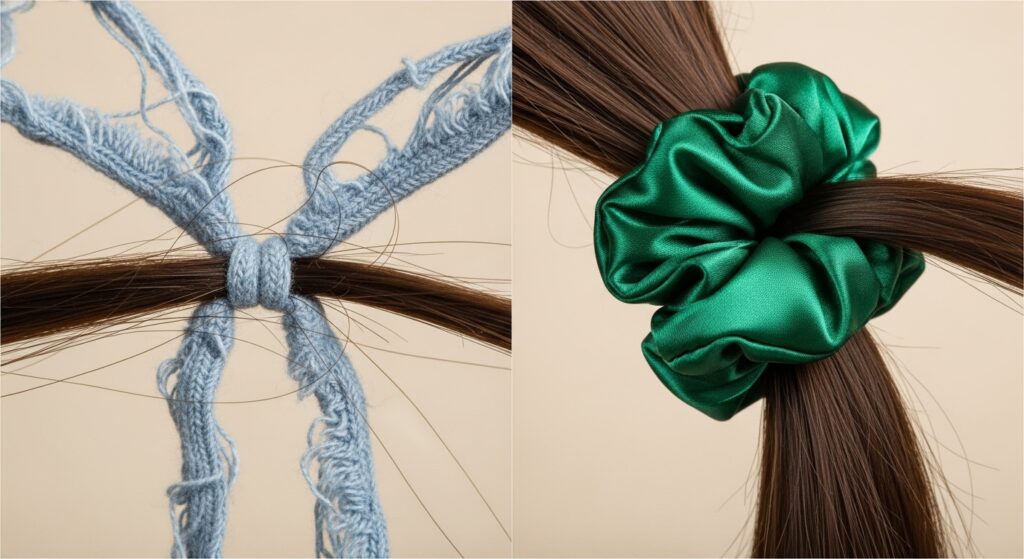 To understand why satin scrunchies are so beneficial, we first need to look at the problem with their most common counterpart: the cotton hair tie. Cotton is a fibrous, absorbent, and surprisingly abrasive material. While it’s perfect for your t-shirts and towels, it’s a nightmare for your hair strands.
