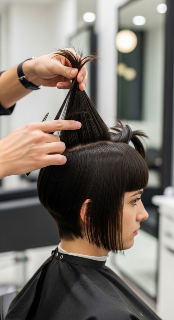 This creates tiny knots of volume at the base. Then, gently smooth the top layer over it. This method adds insane height for styles like the vampire haircut or hime cut without the sticky product buildup.