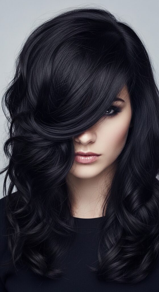 Romantic goth hairstyles thrive on contrast—soft textures with dramatic shape. To get volume without crispiness, focus on setting waves with heat tools, not product. Create a deep side part.