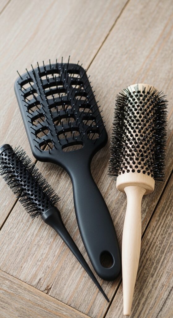 Using the wrong brush can flatten your hair instantly. For blow-drying volume, a vented paddle brush or a round brush is best—they allow airflow through.