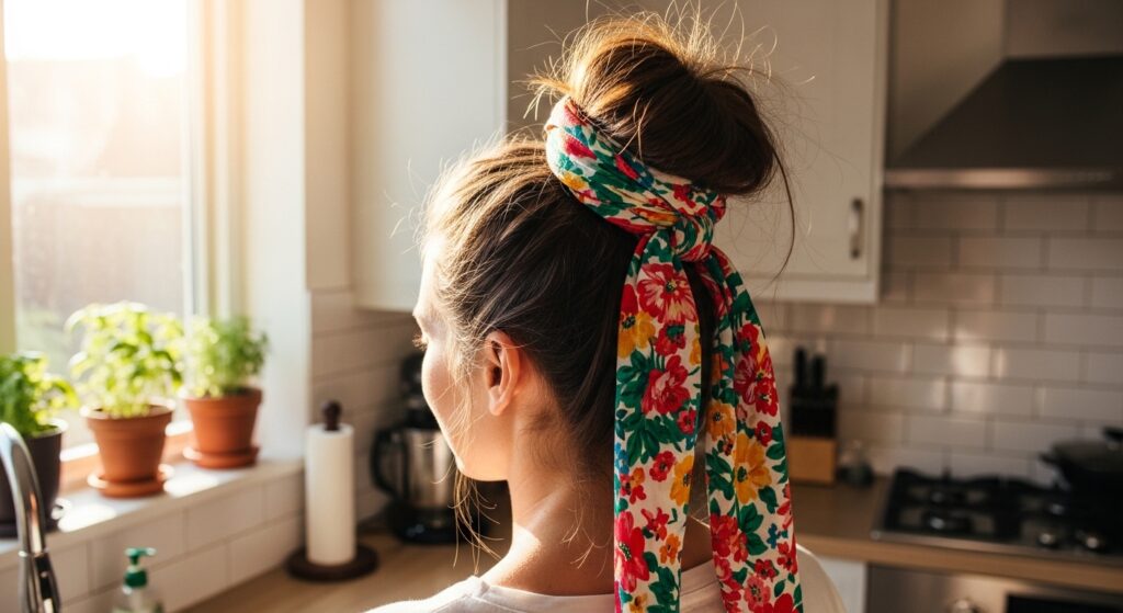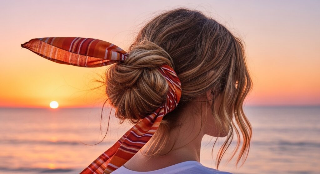 It’s the easiest, most stylish tool in your summer hair kit. A simple scarf can transform a basic updo into something special, keeping you cool and looking put-together in seconds.