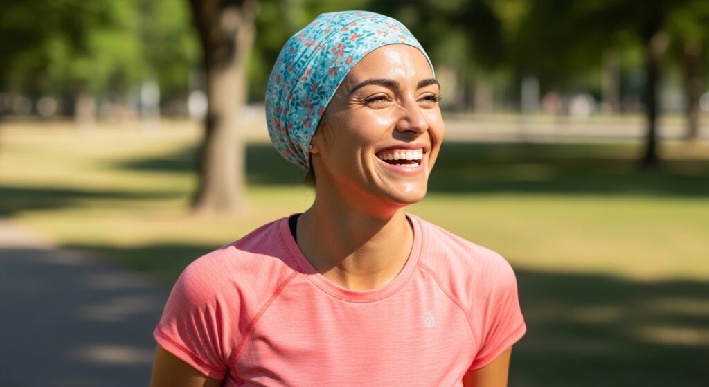 For active days, you need a style that won’t budge. This uses the scarf almost like a second layer of security. It’s functional, cute, and keeps every strand in place during your workout or bike ride.