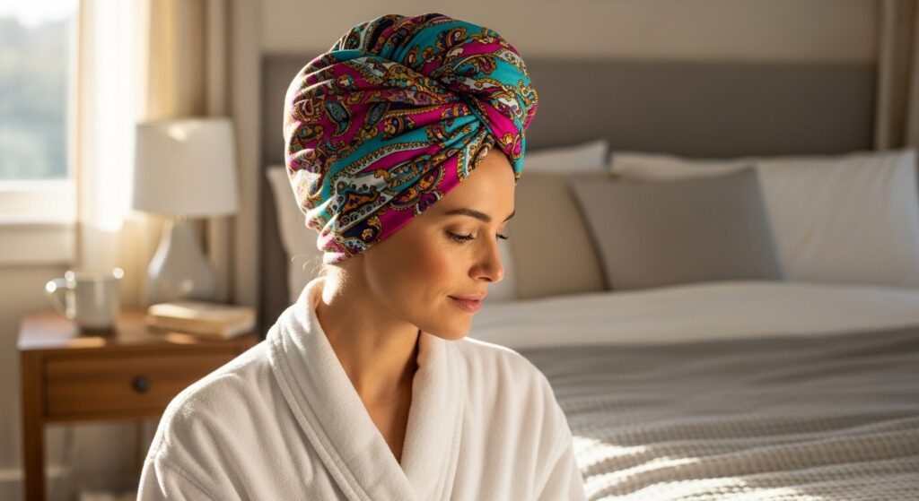 This style gives the illusion of major volume. By wrapping the scarf high on your head, it lifts the roots and creates a beautiful crown effect. It’s regal and perfect for fine hair that needs a boost.