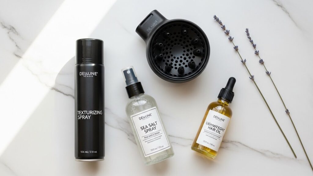 Texturizing Spray: This is your holy grail. A few spritzes on dry hair at the roots and ends add grit, separation, and that “second-day hair” feel instantly.