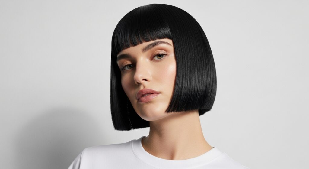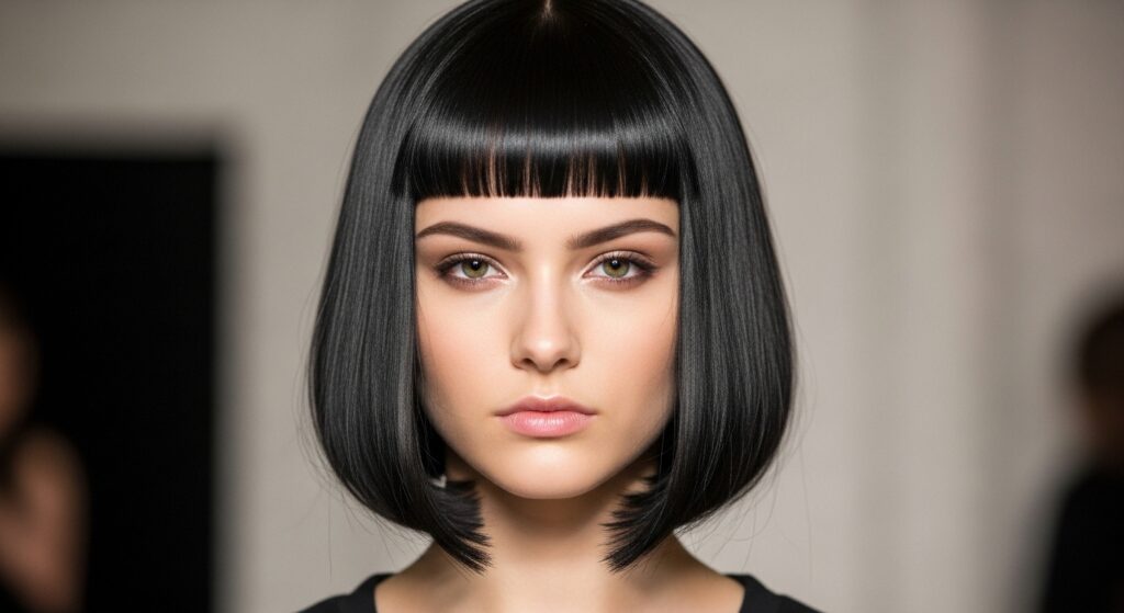 Keep the bob itself super blunt and heavy. The contrast between the severe bang and the clean bob is everything. It’s a look that screams confidence.