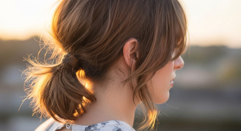 • Secure it: Use a coil hair tie for grip without pulling.