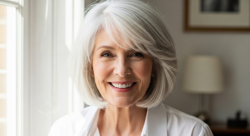 A silver bob is the ultimate statement in confidence and chic. It’s the real quiet luxury hair, earned and beautiful.