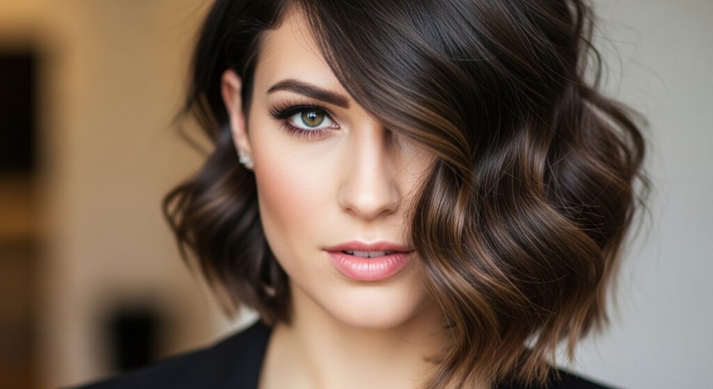 Ready to turn heads? An asymmetrical lob adds instant drama. It’s where your bob meets a longer, angled line—usually several inches difference from one side to the other.