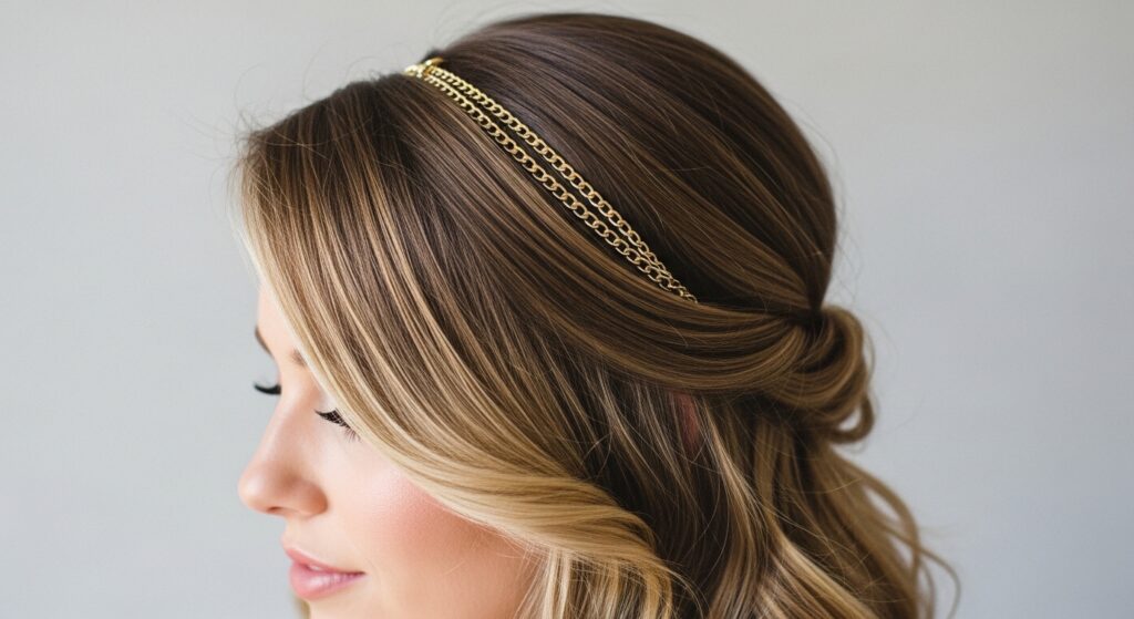 Keep accessories minimal to let the waves shine. A simple, delicate chain headband or a single jeweled clip on the lighter side of the part is perfect.