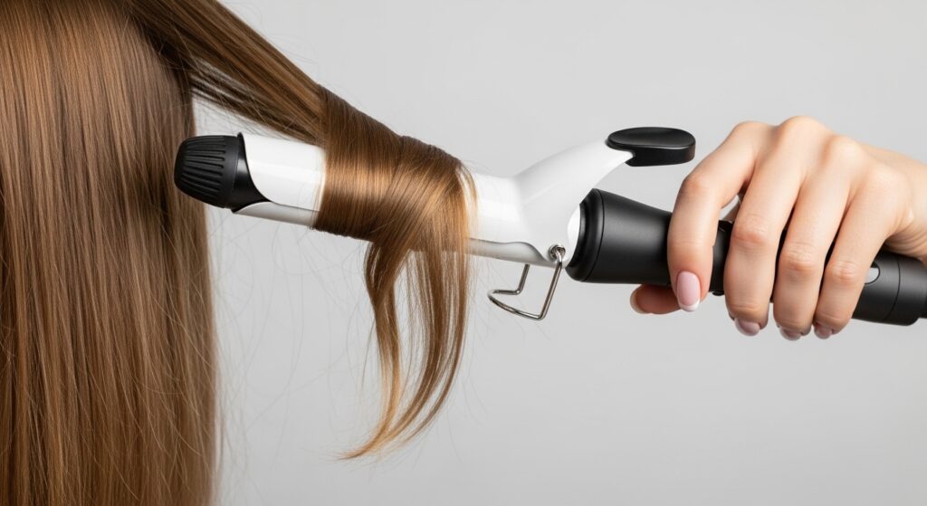 Next, a 1 to 1.25-inch curling iron or wand. Barrel size is key for these waves, not tight curls. You’ll also need strong-hold hairspray and a texturizing spray for that lived-in volume.