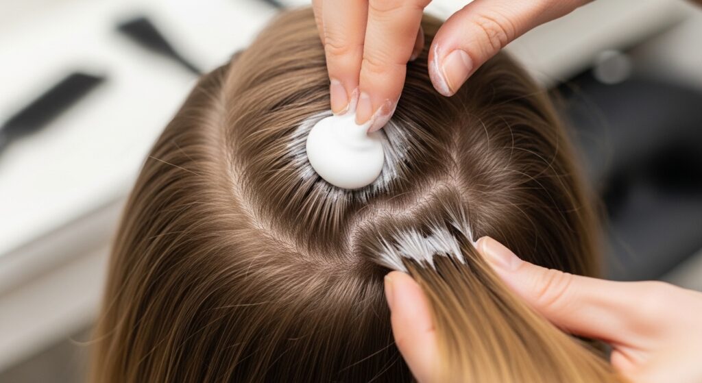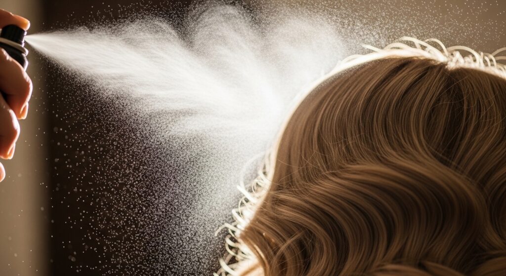 Don’t drench it—you want hold, not stiffness. A light-hold, flexible formula is best. This step keeps your volume from falling as the night goes on.