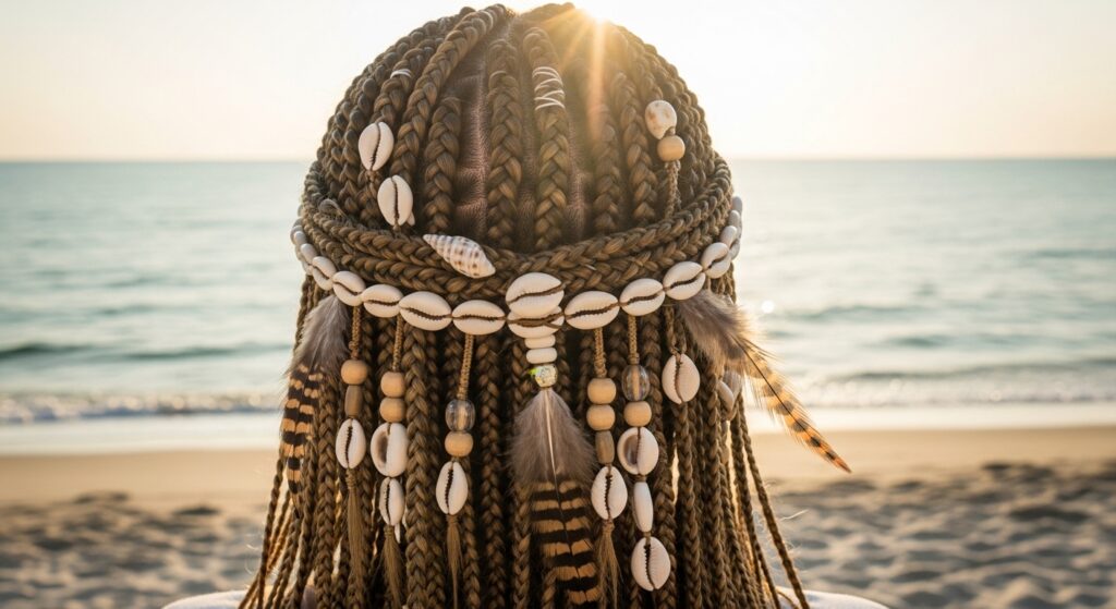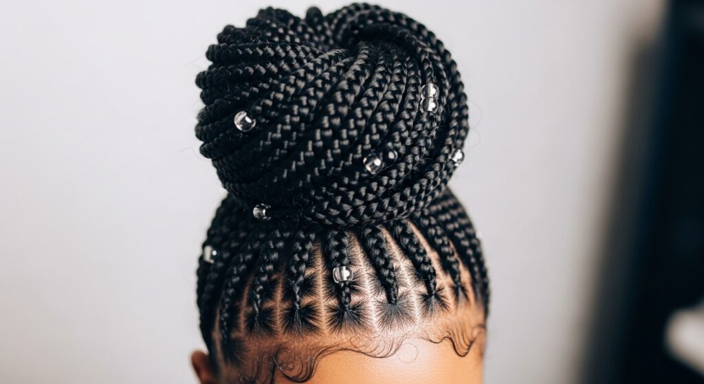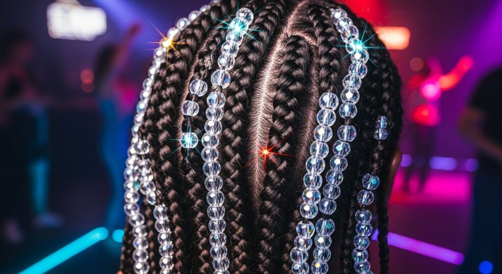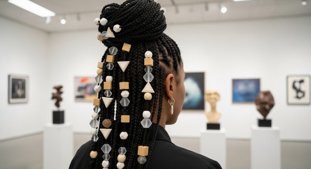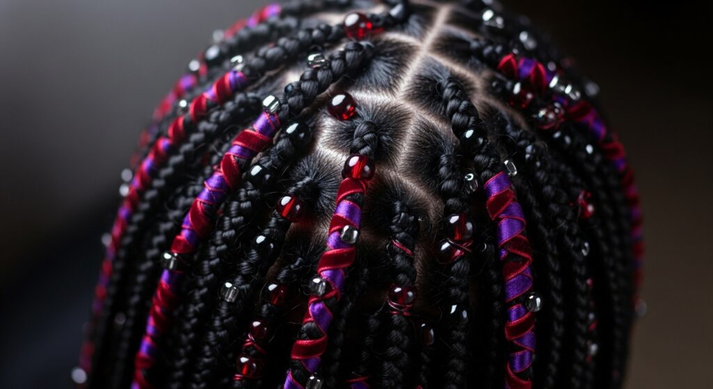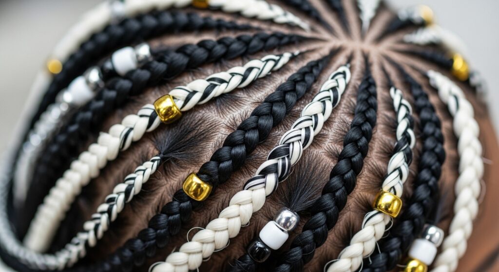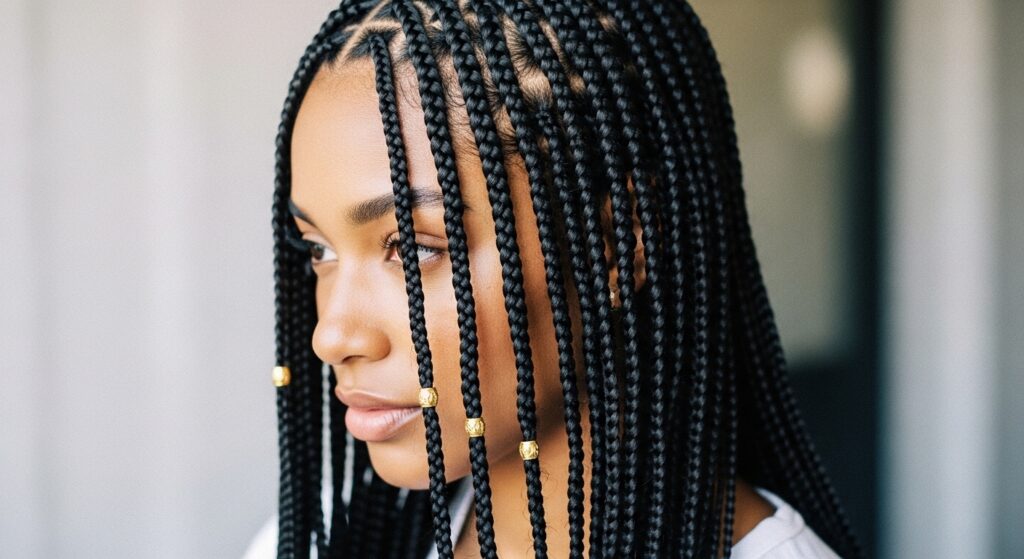 • Monochrome: Beads in the same color family as your braids (black on black, brown on brown). Subtle and chic.