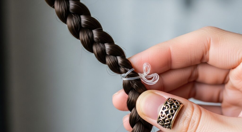 • First, put a small rubber band on the end of your braid.