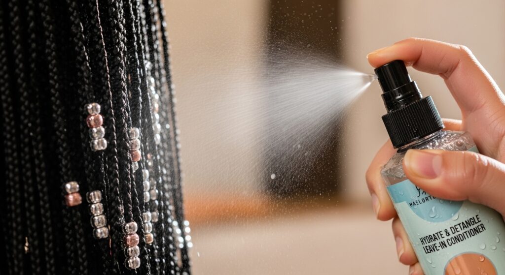 Beads don’t change your basic care routine, but be mindful. When moisturizing, spray your scalp and braids, then gently move the beads aside to let the product reach the hair underneath.