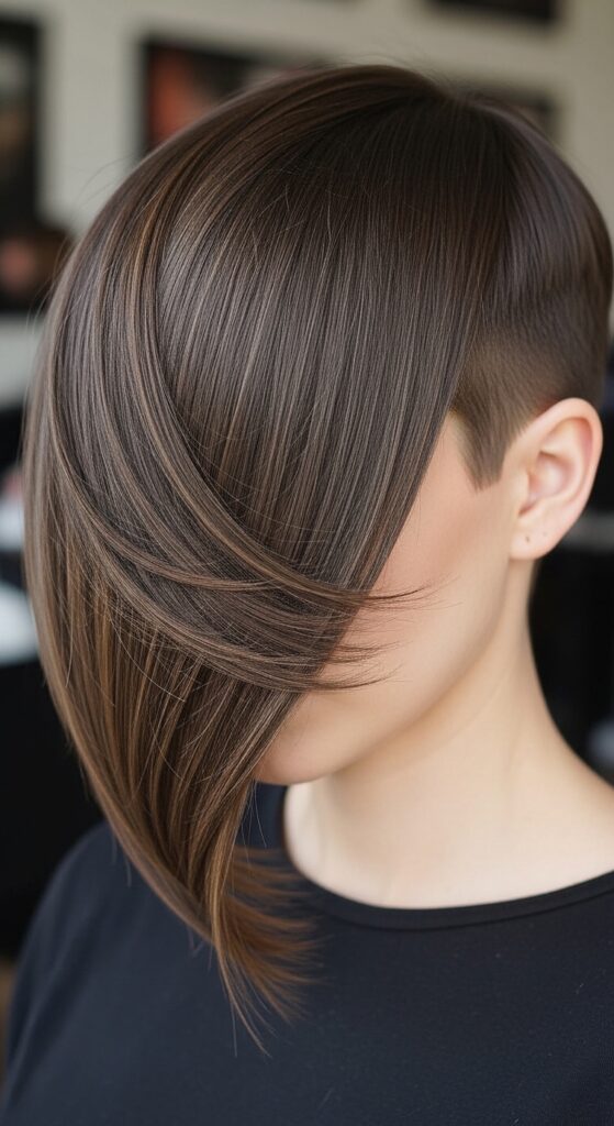 Style it straight and sharp. The illusion will be of a dramatic, angled cut where the longer piece beautifully frames your face. It’s a high-impact look you can remove at the end of the day.