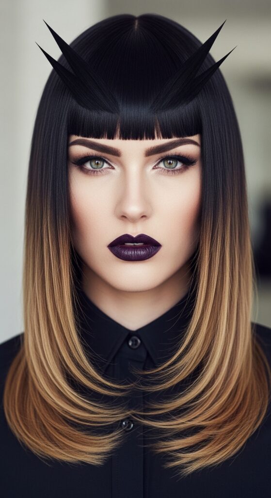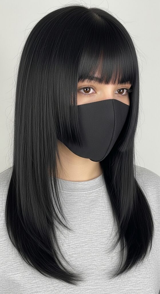 Add a texturizing spray for a touch of separation and a lived-in feel. The bangs add that intentional, dramatic flair that pushes a simple dark style into romantic goth territory. It’s poetic and a little mysterious.