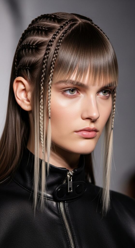 Glitchy glam is about playful, unexpected texture. Use your new length to try mini braids, twisted sections, or pinning back just one side of the bangs. The extensions give you more hair to play with for these details.