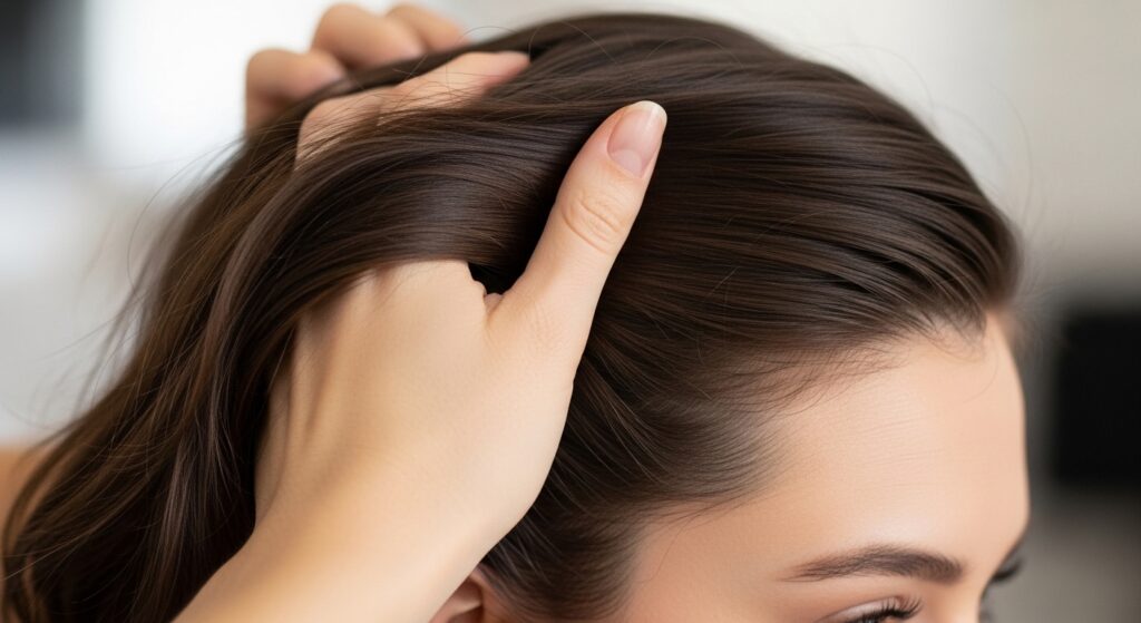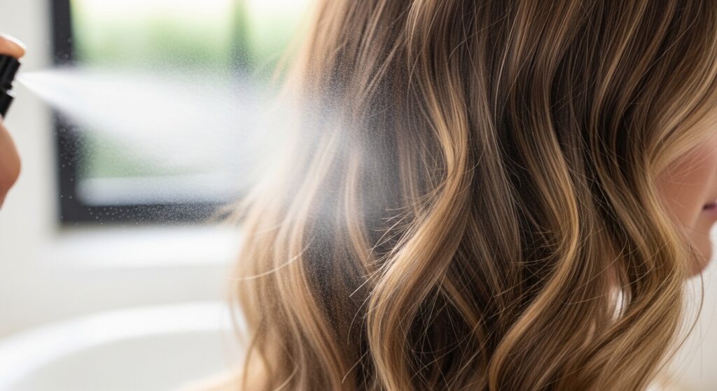 To avoid a style that looks too “done,” we add a bit of strategic texture. Lightly mist a texturizing spray or dry shampoo onto your mid-lengths and ends.