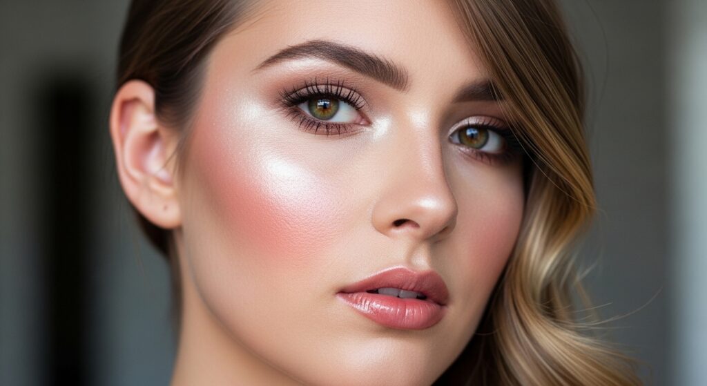 Your hair is giving soft, romantic glow—let your makeup match. Focus on luminous, dewy skin. A liquid highlighter on your cheekbones and cupid’s bow will catch the light beautifully.