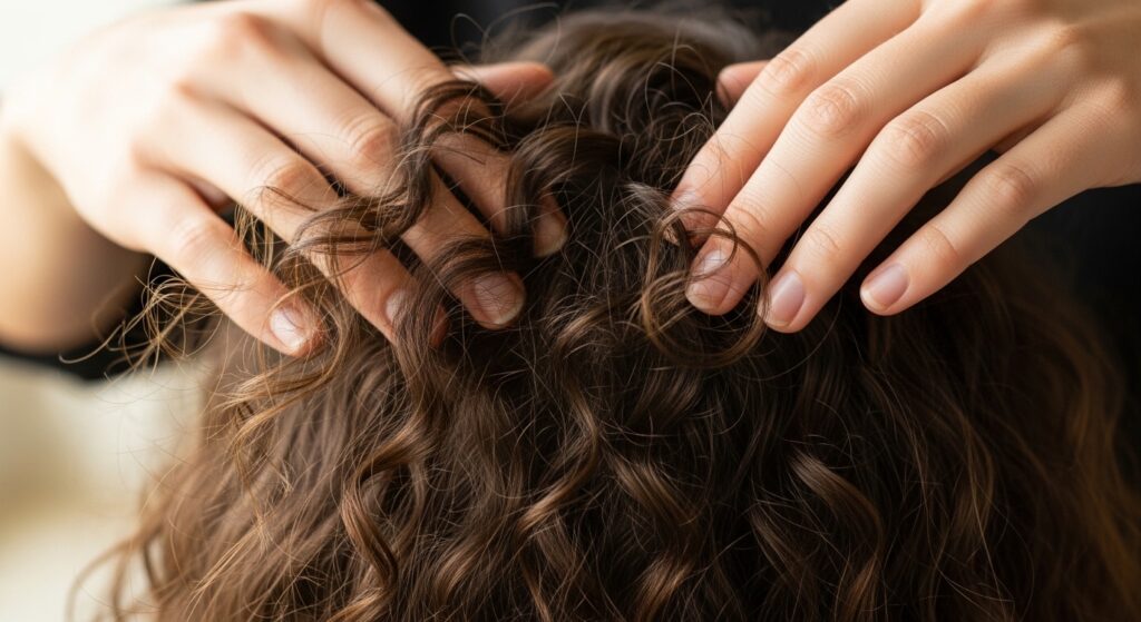 Once all your curls are completely cool, this is the fun part. Gently run your fingers through your hair from roots to ends. Don’t use a brush yet—just your fingers.