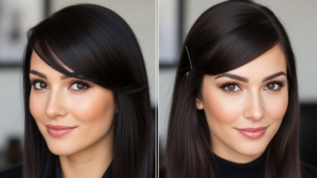 Perhaps the most compelling argument for side-swept bangs is their elegant exit strategy. As they grow, they naturally morph into face-framing layers. You can continue to sweep them to the side, or start blending them with the rest of your hair by incorporating them into braids, twists, or half-up styles. Use decorative pins, clips, or headbands to manage the in-between length stylishly. This seamless transition means you’re never stuck with an awkward, in-your-eyes stage. You can grow them out entirely or simply get them trimmed back into shape—the choice is always yours.