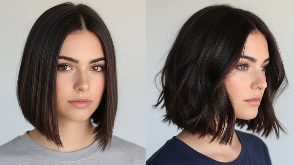 The Blunt-Lob with Softened Ends: The classic blunt lob gets a modern update. The length is clean and strong, but the very ends are subtly point-cut or lightly razored to remove the hard, linear edge. This prevents the “helmet” effect and adds a touch of swingy movement, while the solid interior length maintains incredible shape.