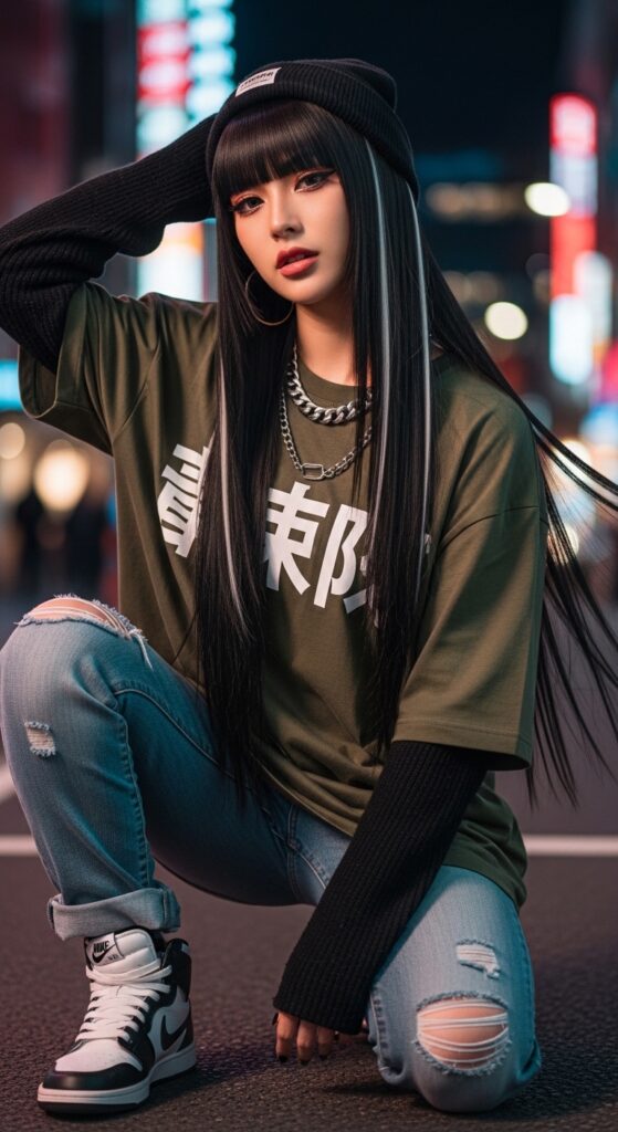 The hime cut is bold. To keep it looking fashion-forward and not costume-y, the hair must look incredibly healthy and sharp. Frizz or dry ends ruin the effect.