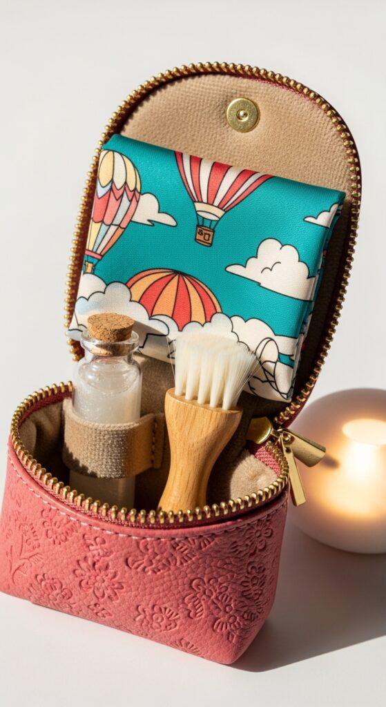 Look for solid serum bars or tiny dropper bottles. A silk or satin scarf to tie your hair up or sleep in will also help maintain that sealed, smooth finish while you’re moving.