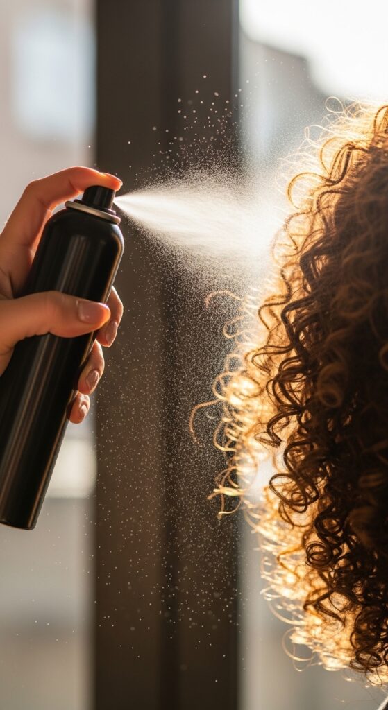 - A lightweight texturizing spray or sea salt spray. This helps the curls hold and gives that piece-y finish.