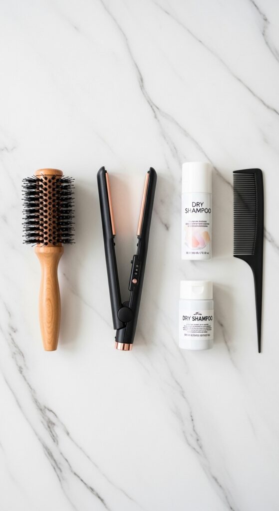 - Strong hold hairspray: A must for all-day hold.