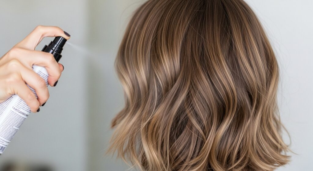 Start with a texturizing spray or sea salt spray on damp or dry hair. These products provide a light, flexible hold and a touch of grit that helps strands clump together in those desirable, beachy sections. Avoid heavy gels or creams that can weigh down the delicate ends you just worked so hard to create.