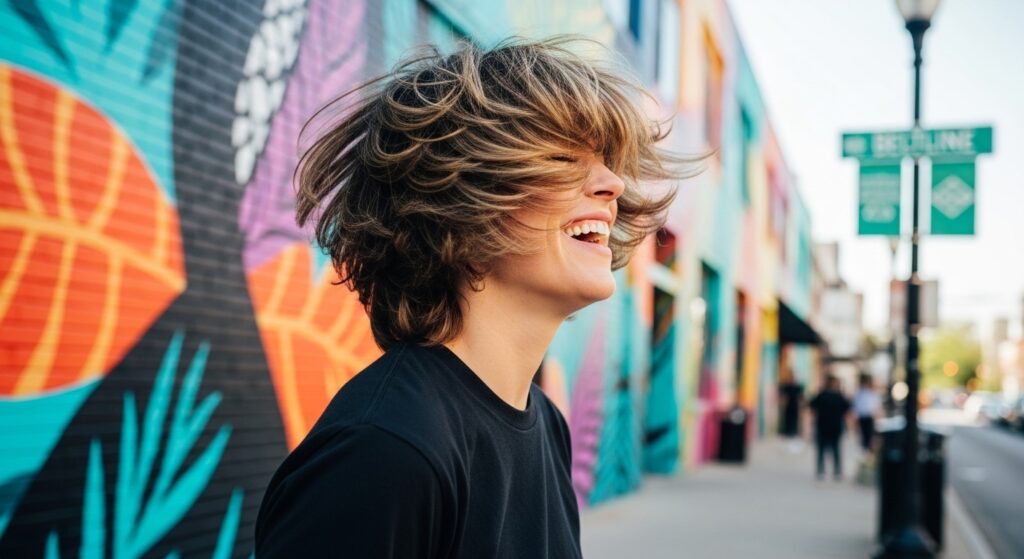 This haircut reflects that duality. It’s soft and face-framing, yet wildly textured and undone. It’s polished enough for a business meeting in Buckhead but looks just as at home at a music festival or a dive bar in East Atlanta Village. The Atlanta Shag is a rebellion against over-styled perfection. It embraces natural texture, wave, and even a bit of frizz, turning what many fight against into its greatest asset.