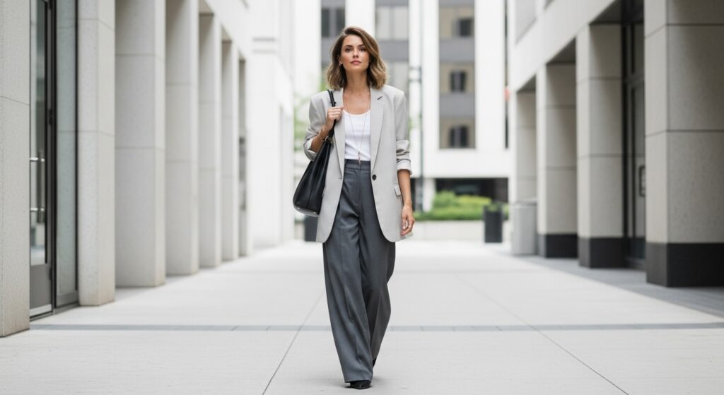 The Soft Suiting: A knit blazer + matching trousers or a coordinated set. This isn’t your traditional, stiff suit. Knit blazers and soft-woven trousers offer a relaxed yet powerful look that’s perfect for the office or a dinner out.