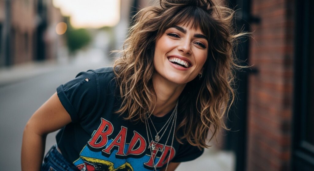 Why is this low-maintenance? The multiple layers create inherent volume and texture, meaning you don’t have to backcomb or tease your roots. The disheveled, “lived-in” look is the entire point, so a little messiness is not just accepted—it’s encouraged. Curtain bangs are the most forgiving type of bangs; they grow out beautifully and can be styled to the side if you need a break. This cut truly shines with a “wash-and-go” mentality, using a texturizing spray on dry hair to separate the waves and add a bit of grit.