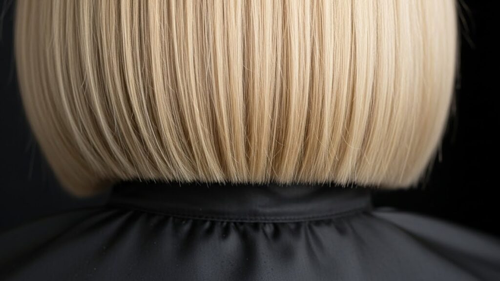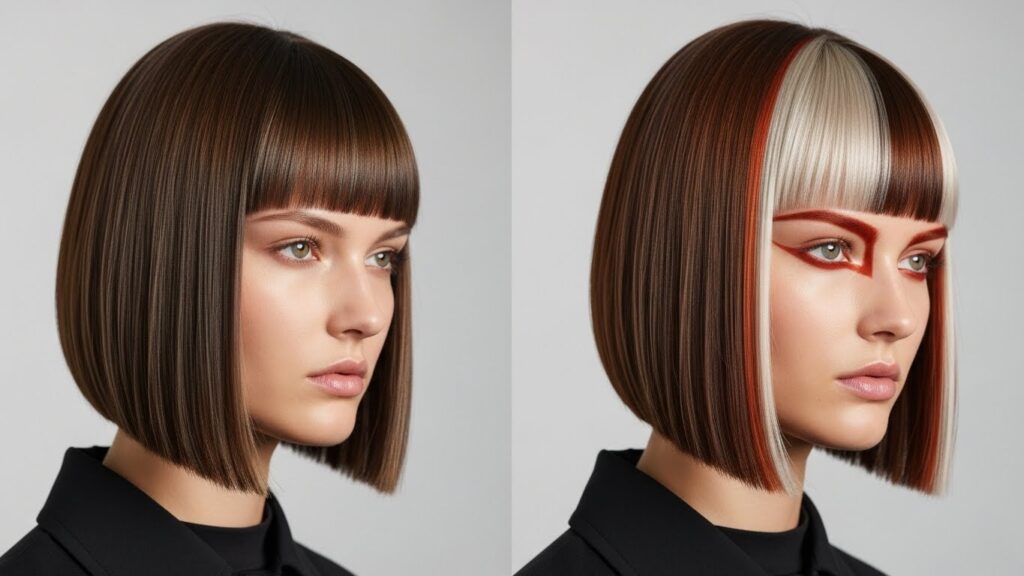 Color can also play a dramatic role. A solid, all-over color (like a deep chocolate or platinum blonde) emphasizes the graphic shape perfectly. For more dimension, balayage or face-framing highlights can be incorporated, but with a blunt cut, the contrast between the colored sections and the baseline color will be more pronounced and artistic, following that clean horizontal line.