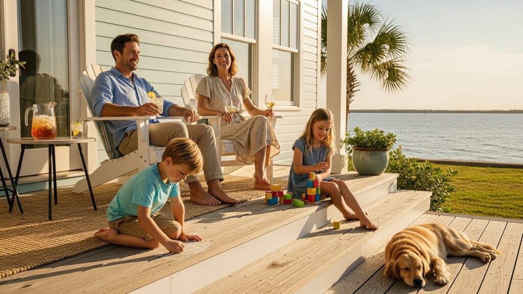 The Unmistakable Porch: If the roof is the crown, the porch is the welcoming handshake. Wrapping around one or more sides of the house, these are not mere decorative add-ons. They are essential outdoor living rooms, offering a shaded, breezy vantage point to watch the water, socialize with neighbors, and enjoy the sunset. Screened-in versions are common, providing a bug-free sanctuary.