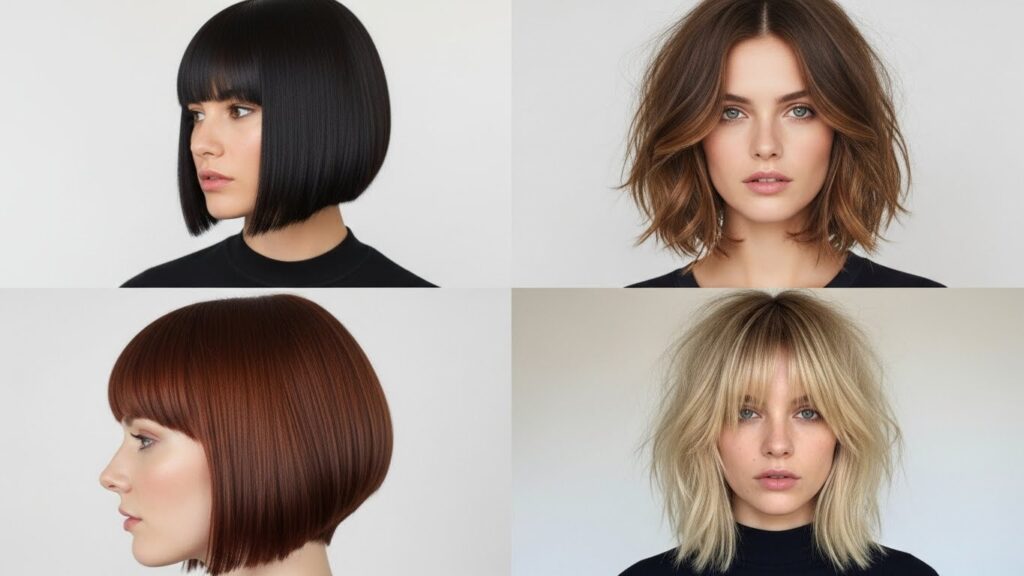 The Blunt Bob: This is a sharp, precise, one-length cut with no layers. It’s graphic, modern, and makes a bold statement. It works best on straight or slightly wavy hair and emphasizes hair health and density.