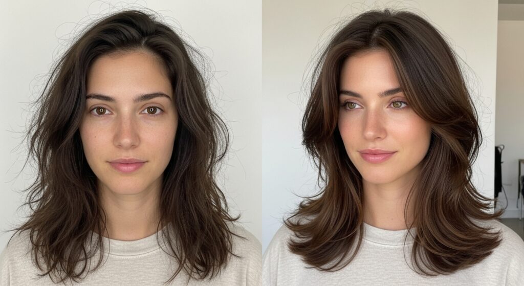 Styling: Embrace air-drying. After washing, apply a light texturizing or wave-enhancing product to damp hair. Gently scrunch or twist sections to encourage your natural pattern. If you must blow-dry, use a round brush to smooth the perimeter and lift the roots slightly for that “internal body.” The beauty is that a slightly messy, imperfect finish only enhances the look.